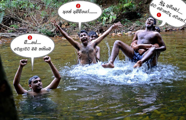 දැන් අපි ලස්සන ගල් අල්ලා සකස් කරන ලද නාන තොටුපලේ බඩක් වතුර දක්වා ඇති කොටසට ගොස් හිතේ හැටියට නා ගත්තෙමු. ඒ අස්සේ වෙලාව බලන්න තැබූ එකා කැම් එක අරන් දිගට, හරහට, ඇදේට, කෙලින්, පොටෝ ගහන්නේය. ඒවා නම් බලන්න ලස්සනය....අගනේය.....