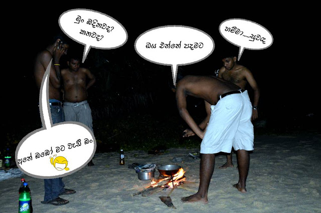 ටිකකින් අංකල් කවරේ උස්සන් ආවේය. ඒකත් හෙන ගේමක් දී පත්තු කර ගත්තේය. දැන් නම් බුදුම ආතල්ය. බුර බුරා නැගෙන ගිනි දැල් කොග්ගල මුහුදු තිරය ආලෝකමත් කරන්නේය.